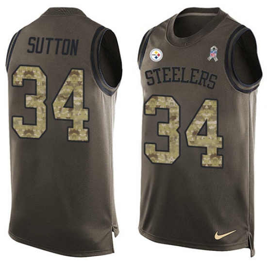 Home>NFL>Pittsburgh Steelers>Cameron Sutton>Men's Nike Pittsburgh Steelers #34 Cameron Sutton Limited Green Salute to Service Tank Top NFL Jersey