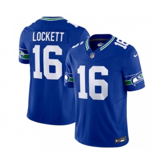 >Men's Nike Seattle Seahawks #16 Tyler Lockett Royal 2023 F.U.S.E. Vapor Limited Throwback Stitched Jersey