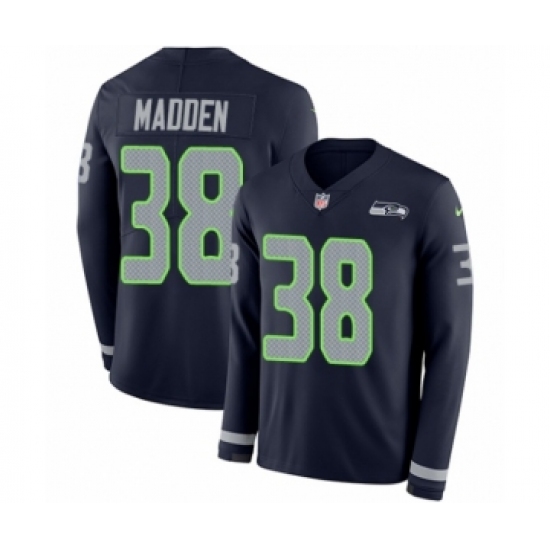 >Men's Nike Seattle Seahawks #38 Tre Madden Limited Navy Blue Therma Long Sleeve NFL Jersey