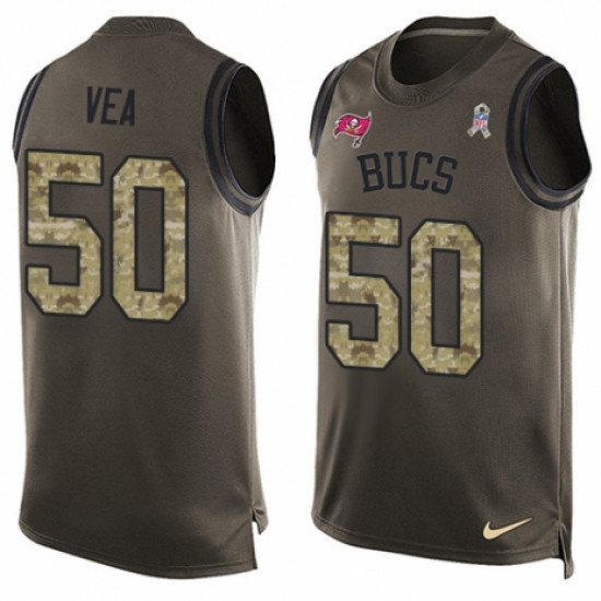 >Men's Nike Tampa Bay Buccaneers #50 Vita Vea Limited Green Salute to Service Tank Top NFL Jersey