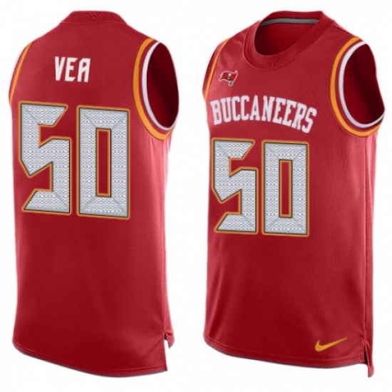 >Men's Nike Tampa Bay Buccaneers #50 Vita Vea Limited Red Player Name & Number Tank Top NFL Jersey