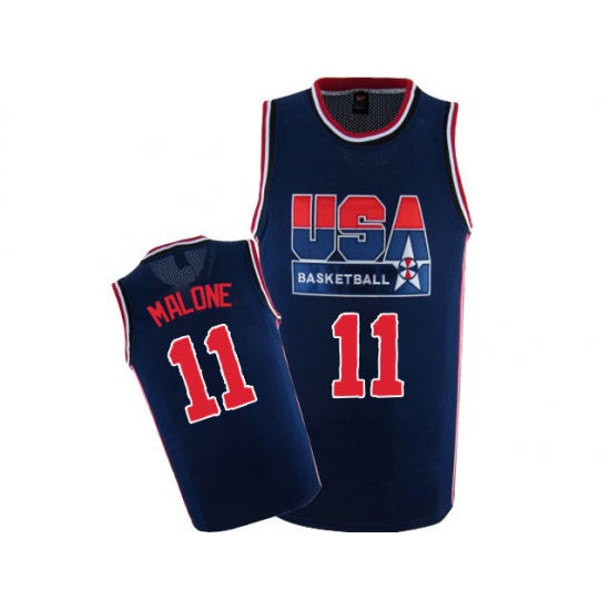 Home>NBA>Team USA>Karl Malone>Men's Nike Team USA #11 Karl Malone Authentic Navy Blue 2012 Olympic Retro Basketball Jersey