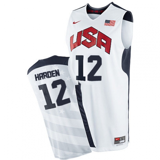 Men's Nike Team USA #12 James Harden Authentic White 2012 Olympics Basketball Jersey