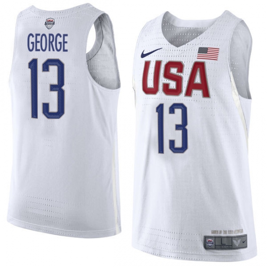 Men's Nike Team USA #13 Paul George Authentic White 2016 Olympic Basketball Jersey