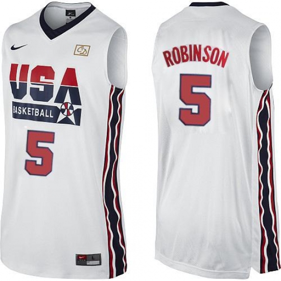 Men's Nike Team USA #5 David Robinson Authentic White 2012 Olympic Retro Basketball Jersey