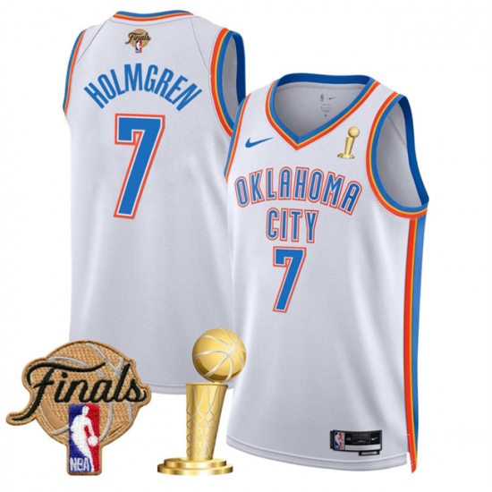 Men's Oklahoma City Thunder #7 Chet Holmgren White 2025 Finals And Finals Champions Association Edition Stitched Basketball Jersey