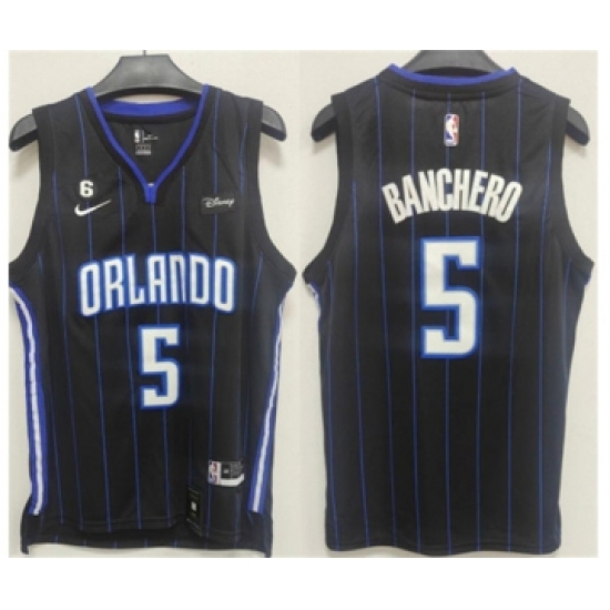 Men's Orlando Magic #5 Paolo Banchero Black With No.6 Patch Icon Edition Stitched Swingman Jersey