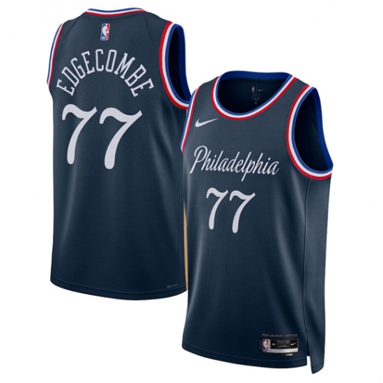 Men's Philadelphia 76ers #77 V. J. Edgecombe Navy 2025-26 City Edition Stitched Jersey