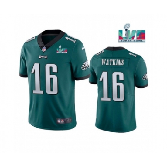 >Men's Philadelphia Eagles #16 Quez Watkins Green Super Bowl LVII Vapor Untouchable Limited Stitched Jersey