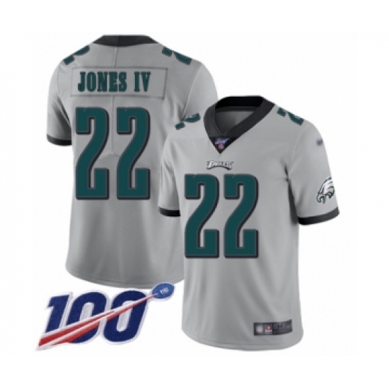 >Men's Philadelphia Eagles #22 Sidney Jones Limited Silver Inverted Legend 100th Season Football Jersey