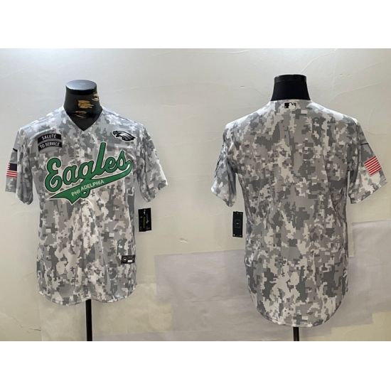>Men's Philadelphia Eagles Blank Arctic Camo 2024 Salute to Service Stitched Baseball Jersey