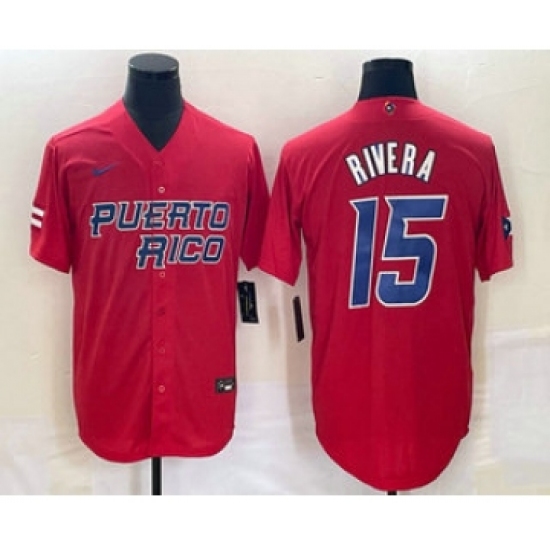 Men's Puerto Rico Baseball #15 Emmanuel Rivera 2023 Red World Classic Stitched Jersey