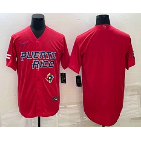 >Men's Puerto Rico Baseball Blank 2023 Red World Baseball Classic Stitched Jersey