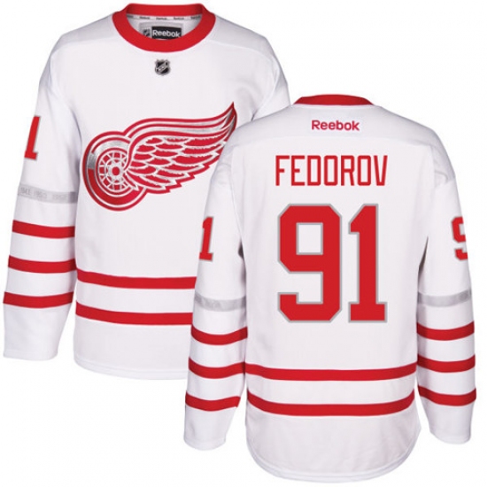 Home>NHL>Detroit Red Wings>Sergei Fedorov>Men's Reebok Detroit Red Wings #91 Sergei Fedorov Premier White 2017 Centennial Classic NHL Jersey