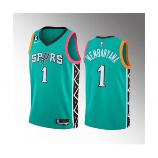 Men's San Antonio Spurs #1 Victor Wembanyama Teal 2022-23 City Edition Swingman With NO.6 Stitched Basketball Jersey