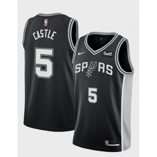 Men's San Antonio Spurs #5 Stephon Castle Black Stitched Basketball Jersey