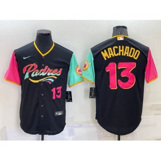 Men's San Diego Padres #13 Manny Machado Black Number 2022 City Connect Cool Base Stitched Jersey