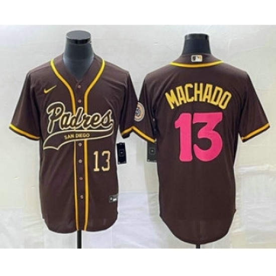 Men's San Diego Padres #13 Manny Machado Number Brown NEW 2023 City Connect Cool Base Stitched Jersey