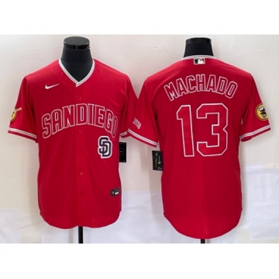Men's San Diego Padres #13 Manny Machado Red NEW 2023 Cool Base Stitched Jersey