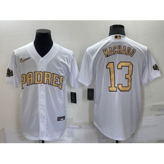 >Men's San Diego Padres #13 Manny Machado White 2022 All Star Stitched Cool Base Nike Jersey