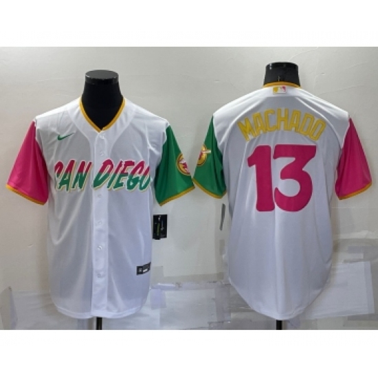 Men's San Diego Padres #13 Manny Machado White 2022 City Connect Cool Base Stitched Jersey