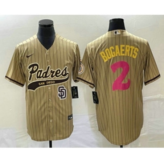 >Men's San Diego Padres #2 Xander Bogaerts Tan Pinstripe 2023 City Connect Cool Base Stitched Jersey1