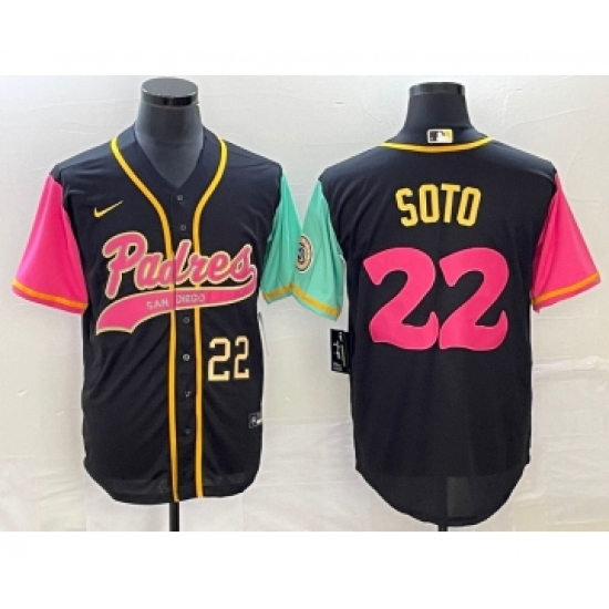 >Men's San Diego Padres #22 Juan Soto Number Black NEW 2023 City Connect Cool Base Stitched Jersey