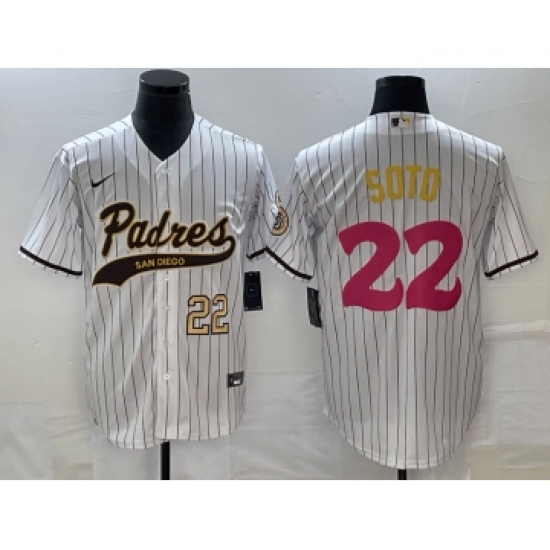 >Men's San Diego Padres #22 Juan Soto Number White Pinstripe 2023 City Connect Cool Base Stitched Jersey
