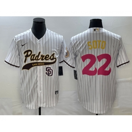Men's San Diego Padres #22 Juan Soto White Pinstripe 2023 City Connect Cool Base Stitched Jersey 1