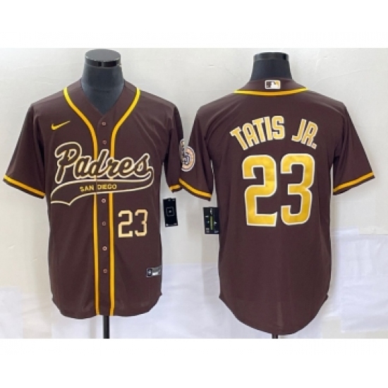 Men's San Diego Padres #23 Fernando Tatis Jr Number Brown NEW 2023 Cool Base Stitched Jersey