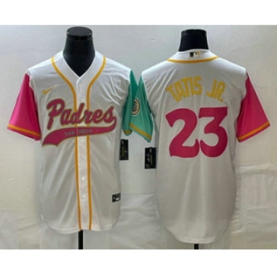Men's San Diego Padres #23 Fernando Tatis Jr White NEW 2023 City Connect Cool Base Stitched Jersey1