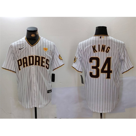 Men's San Diego Padres #34 Michael King White With PS Cool Base Stitched Baseball Jersey