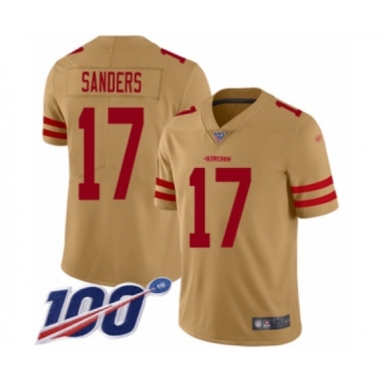 >Men's San Francisco 49ers #17 Emmanuel Sanders Limited Gold Inverted Legend 100th Season Football Jersey