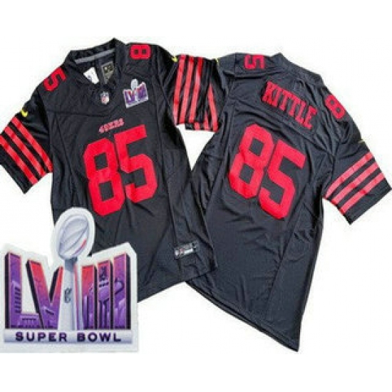 >Men's San Francisco 49ers #85 George Kittle Limited Black FUSE LVIII Super Bowl Vapor Jersey