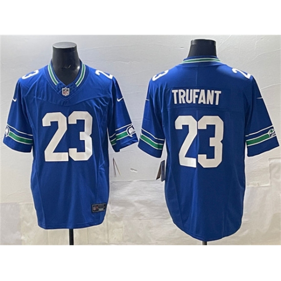 >Men's Seattle Seahawks #23 Marcus Trufant Royal 2024 F.U.S.E. Throwback Vapor Limited Football Stitched Jersey