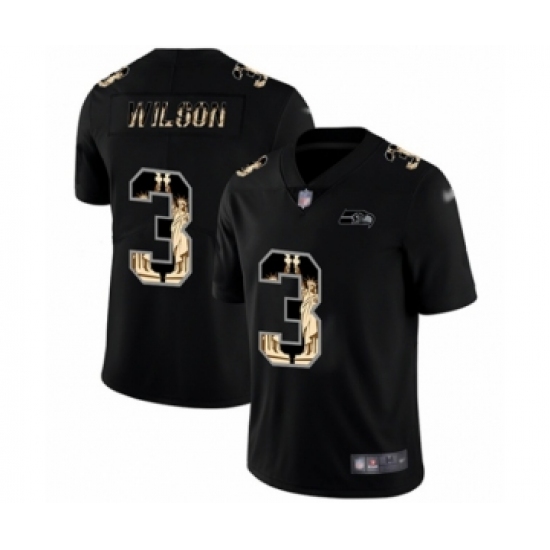 Men's Seattle Seahawks #3 Russell Wilson Limited Black Statue of Liberty Football Jersey