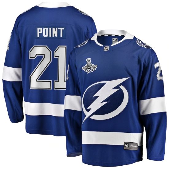 >Men's Tampa Bay Lightning #21 Brayden Point Fanatics Branded Blue Home 2020 Stanley Cup Champions Breakaway Jersey