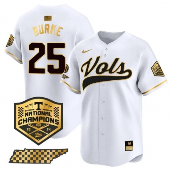 >Men's Tennessee Volunteers #25 Blake Burke White Gold 2024 Champions Vapor Limited Stitched Jersey