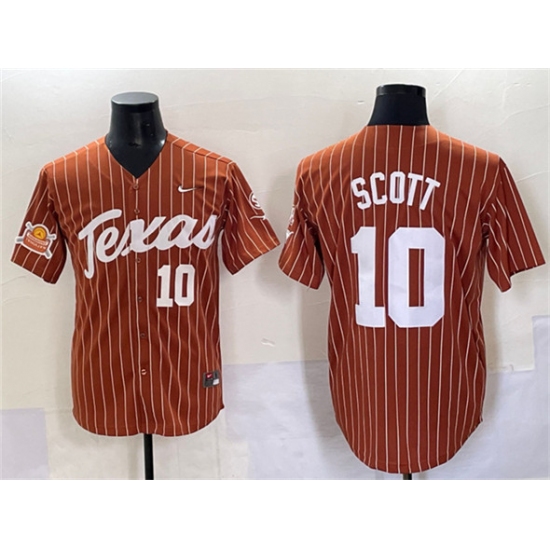 Men's Texas Longhorns #10 Mia Scott Orange SEC Patch Stitched Jersey