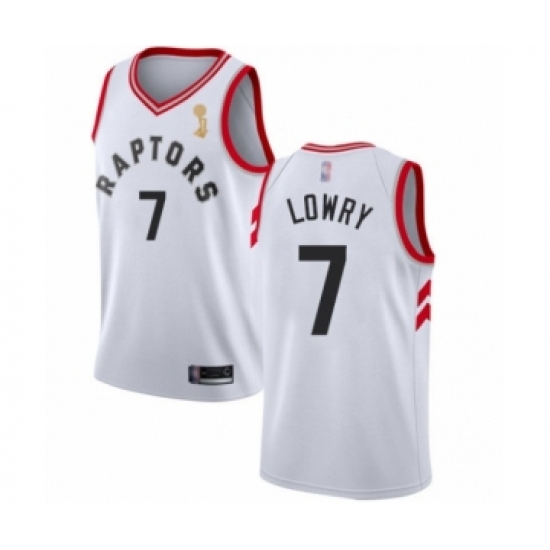 >Men's Toronto Raptors #7 Kyle Lowry Swingman White 2019 Basketball Finals Champions Jersey - Association Edition