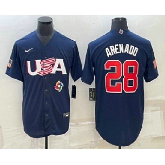 Men's USA Baseball #28 Nolan Arenado 2023 Navy World Baseball Classic Stitched Jerseys
