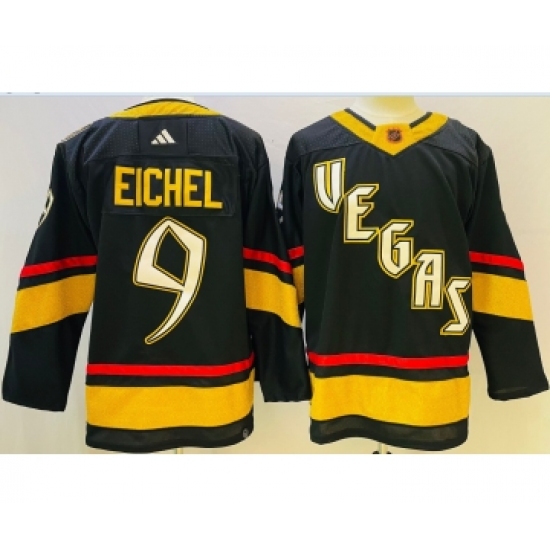 >Men's Vegas Golden Knights #9 Jack Eichel Black 2022 Reverse Retro Authentic Jersey