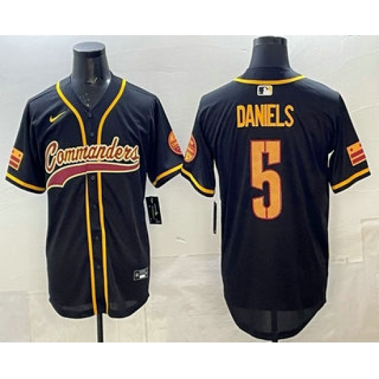 >Men's Washington Commanders #5 Jayden Daniels Black Limited Stitched Baseball Jersey