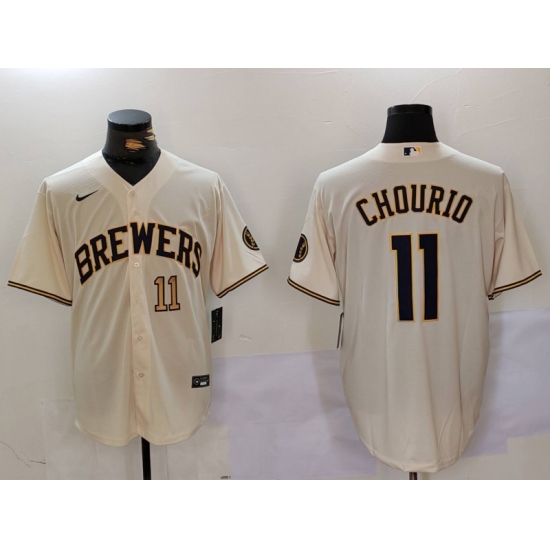 Milwaukee Brewers #11 Jackson Chourio Cream Stitched Cool Base Nike Jerseys