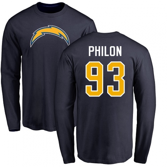 NFL Nike Los Angeles Chargers #93 Darius Philon Navy Blue Name & Number Logo Long Sleeve T-Shirt