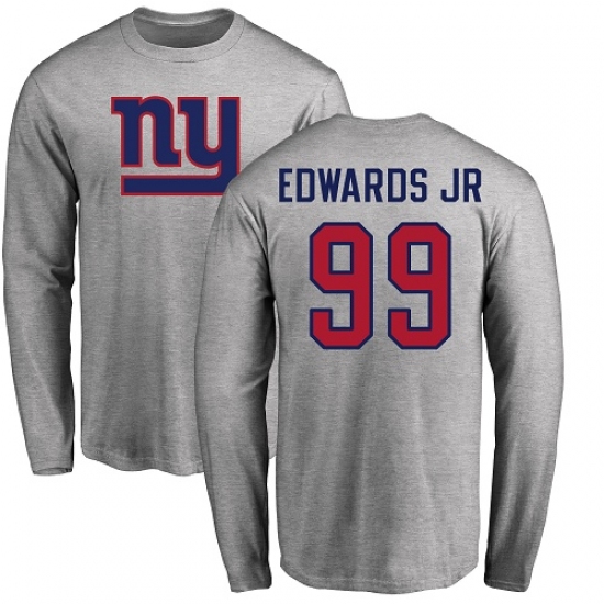 >NFL Nike New York Giants #99 Mario Edwards Jr Ash Name & Number Logo Long Sleeve T-Shirt