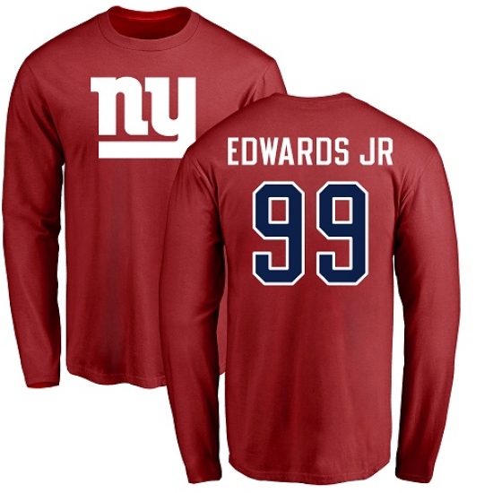 NFL Nike New York Giants #99 Mario Edwards Jr Red Name & Number Logo Long Sleeve T-Shirt