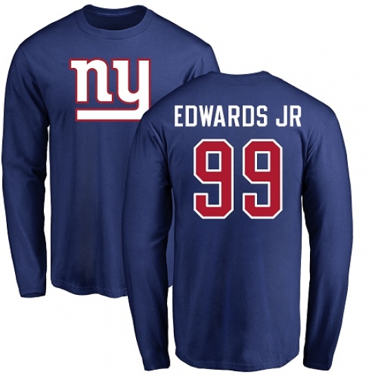 >NFL Nike New York Giants #99 Mario Edwards Jr Royal Blue Name & Number Logo Long Sleeve T-Shir