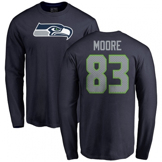 NFL Nike Seattle Seahawks #83 David Moore Navy Blue Name & Number Logo Long Sleeve T-Shirt