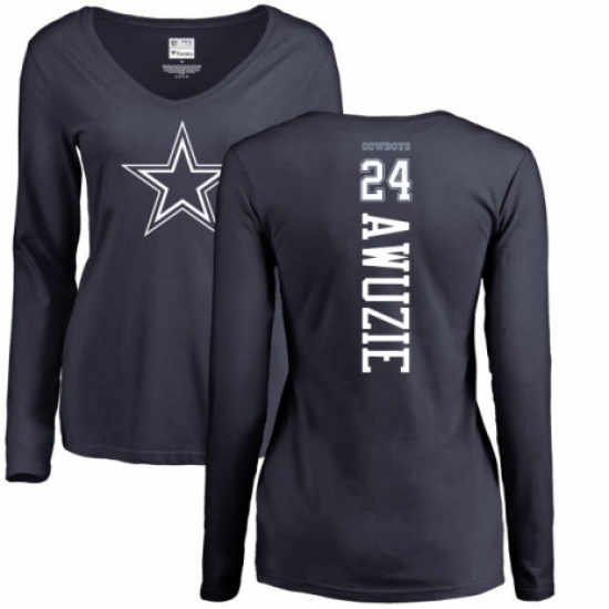 NFL Women's Nike Dallas Cowboys #24 Chidobe Awuzie Navy Blue Backer Slim Fit Long Sleeve T-Shirt